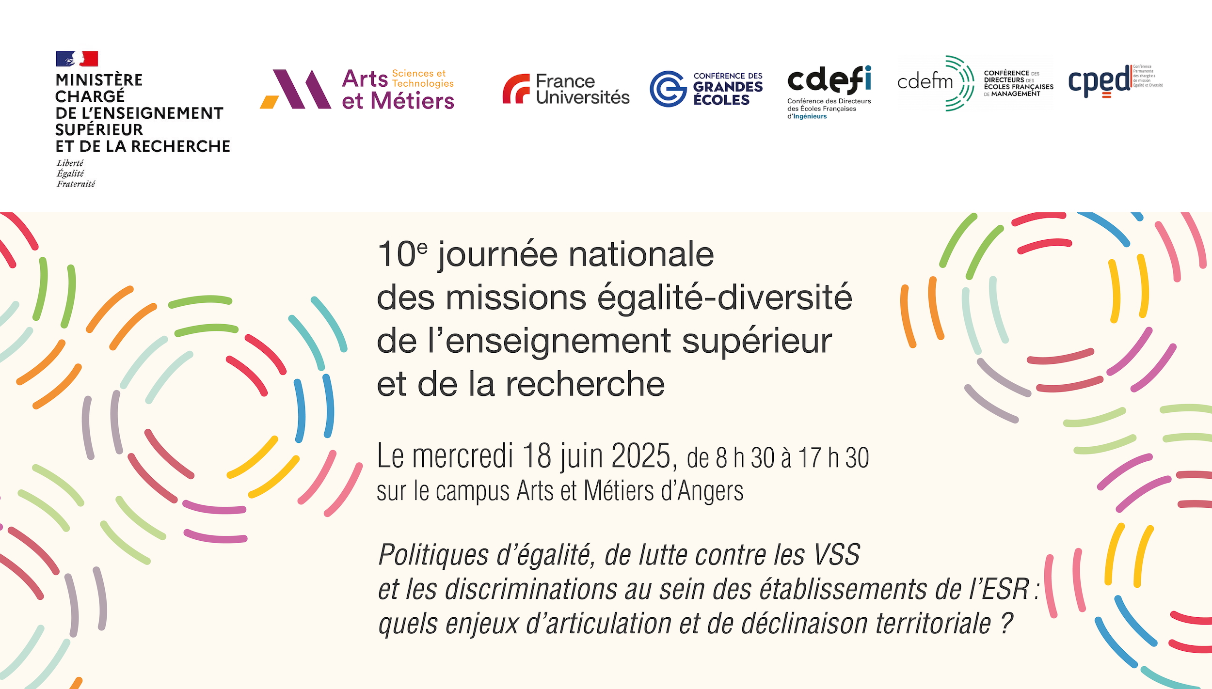Cette 10e édition portera sur la thématique suivante : Politiques d'égalité, de lutte contre les VSS et les discriminations au sein des établissements de l'ESR : quels enjeux d'articulation et de déclinaison territoriale ?