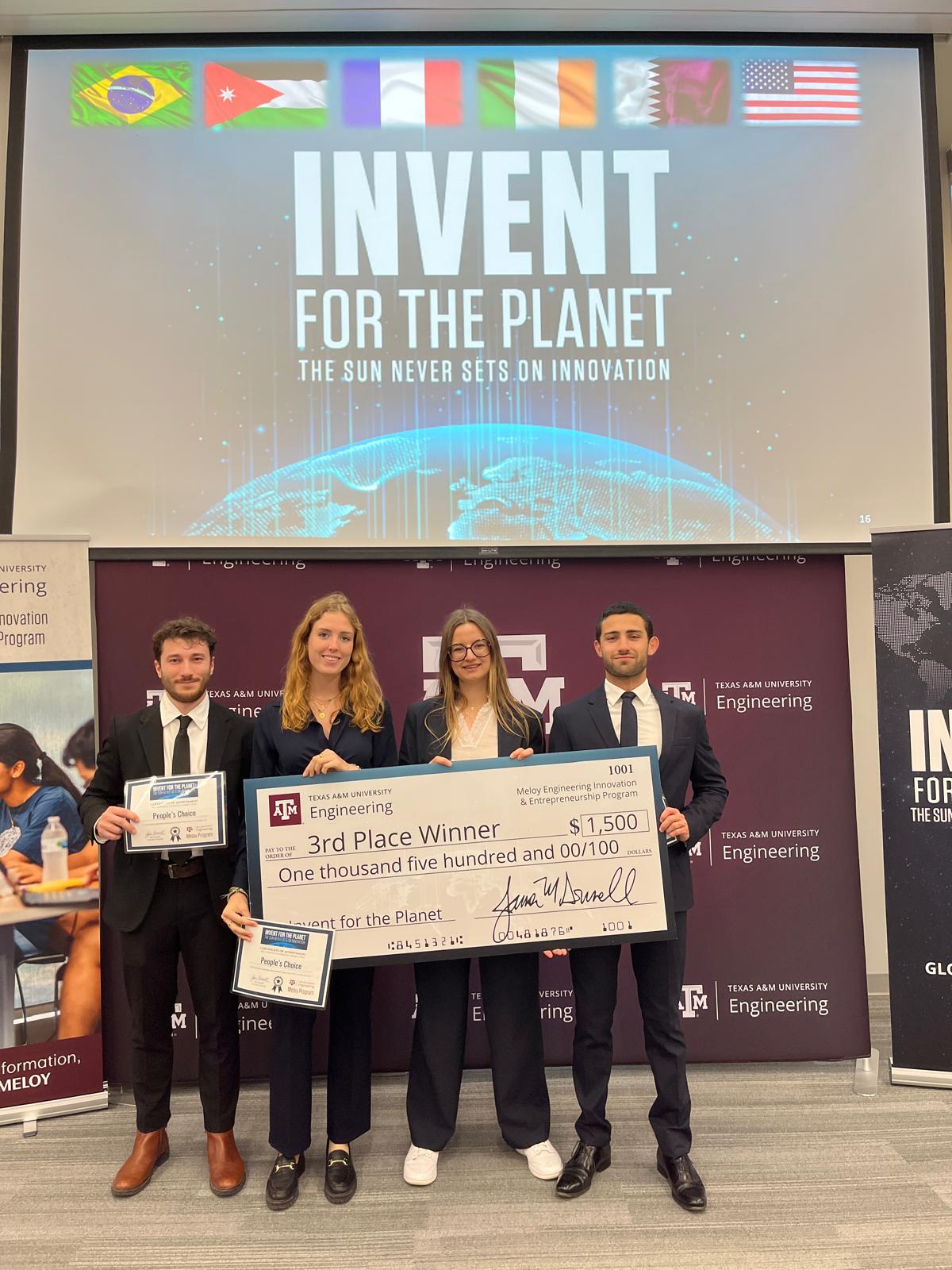 L’équipe a décroché la 3ᵉ place derrière le Qatar et la Jordanie ainsi que le Prix du Public lors de la finale internationale organisée par Texas A&M University College of Engineering !