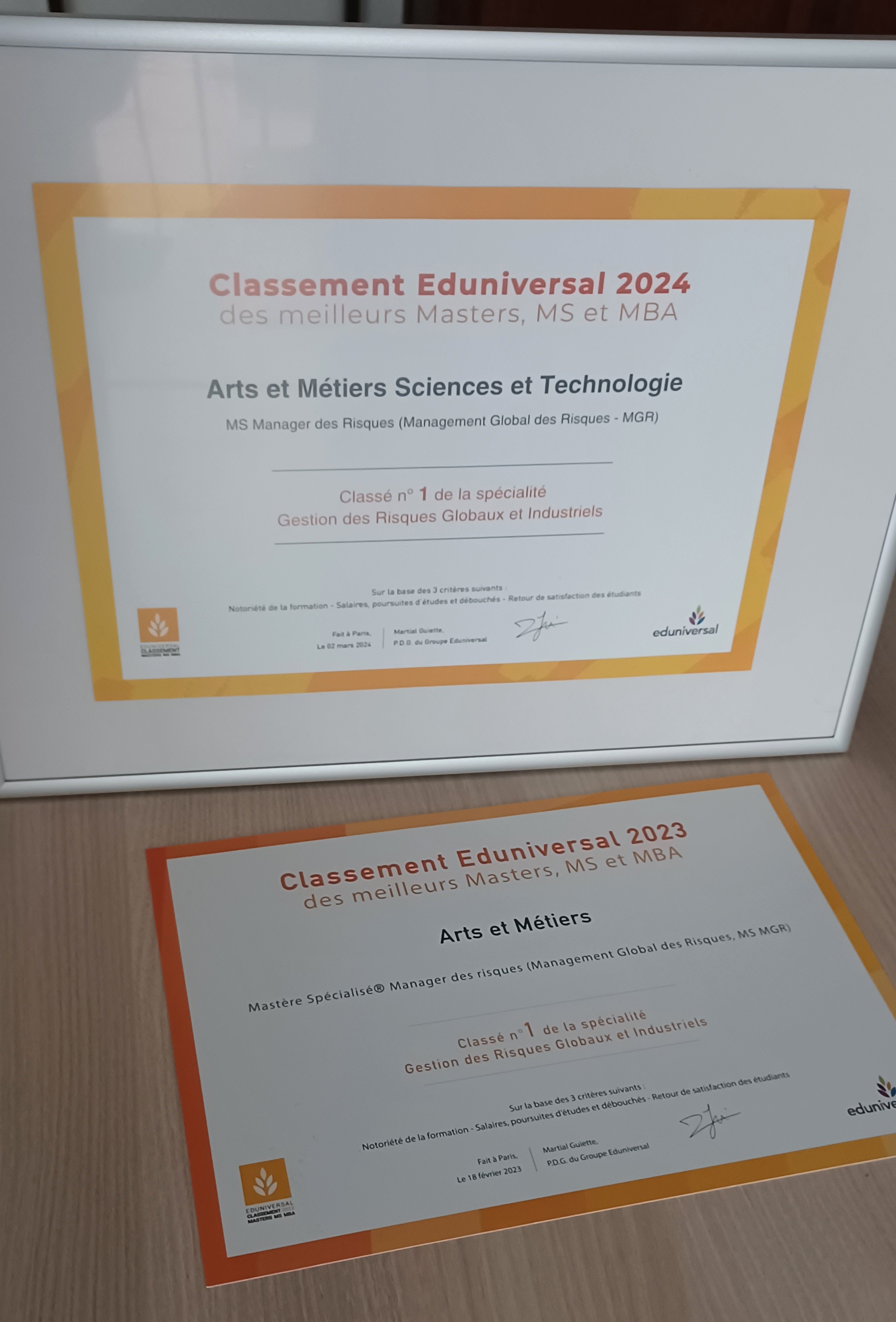 Le Mastère Spécialisé® « Manager des Risques » (Management Global des Risques, MS MGR) a été, pour la douzième année consécutive, classé par le Cabinet Eduniversal comme meilleur Mastère Spécialisé pour la catégorie Master Gestion des Risques Globaux et Industriels.