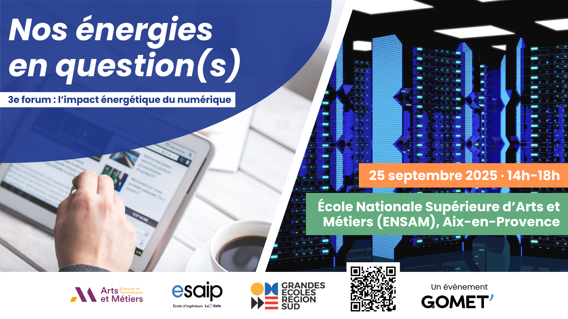 Organisé par Gomet’ Media, en partenariat avec le campus Arts et Métiers d’Aix-en-Provence, l’ESAIP et le réseau des Grandes écoles de la Région Sud, l’événement réunira étudiants, chercheurs, entreprises, énergéticiens, acteurs publics et associatifs pour explorer des pistes concrètes vers la sobriété numérique.