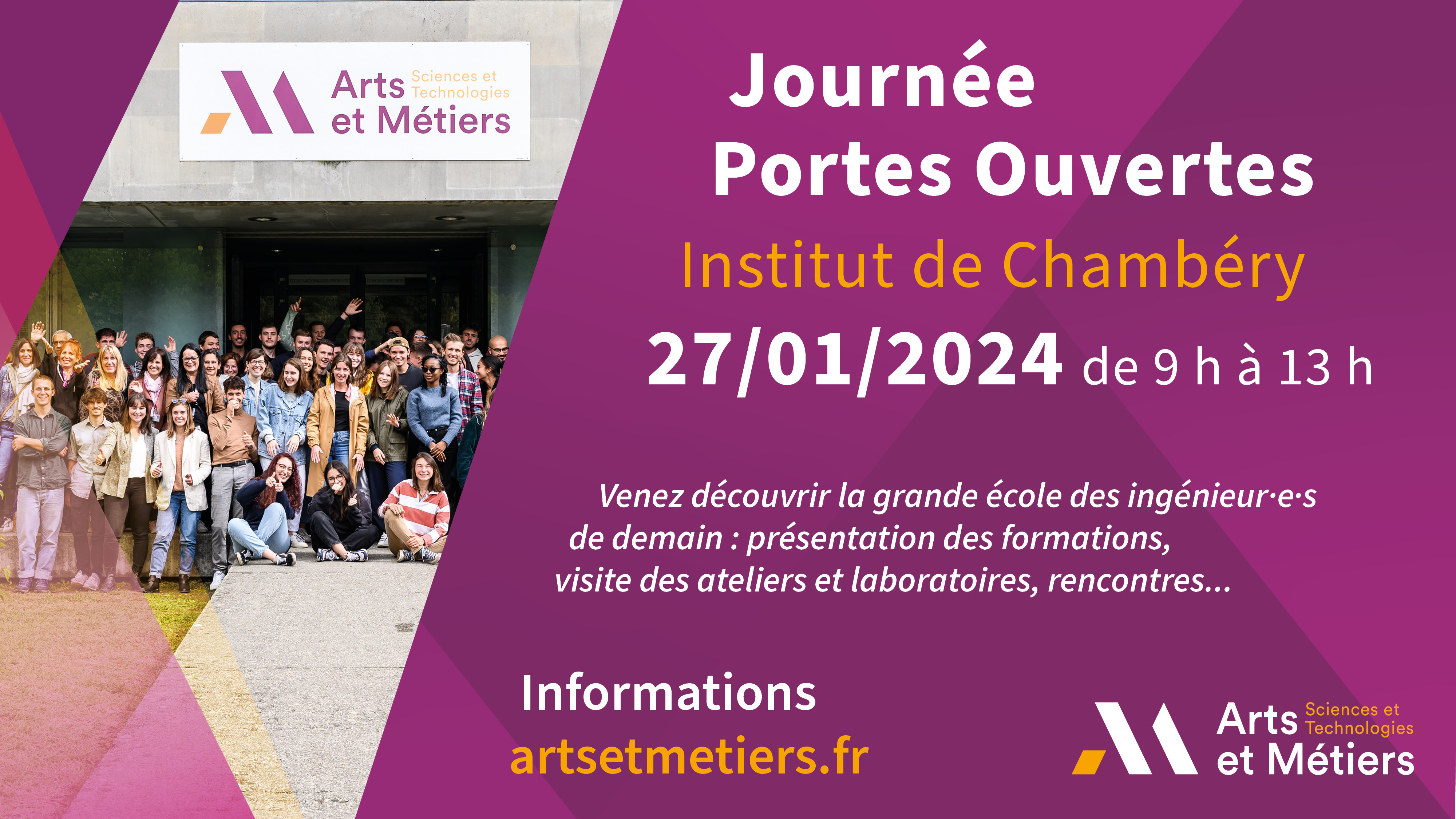 L"institut Arts et Métiers de Chambéry vous invite à sa Journée Portes Ouvertes, samedi 27 janvier 2024 de 9h à 13h