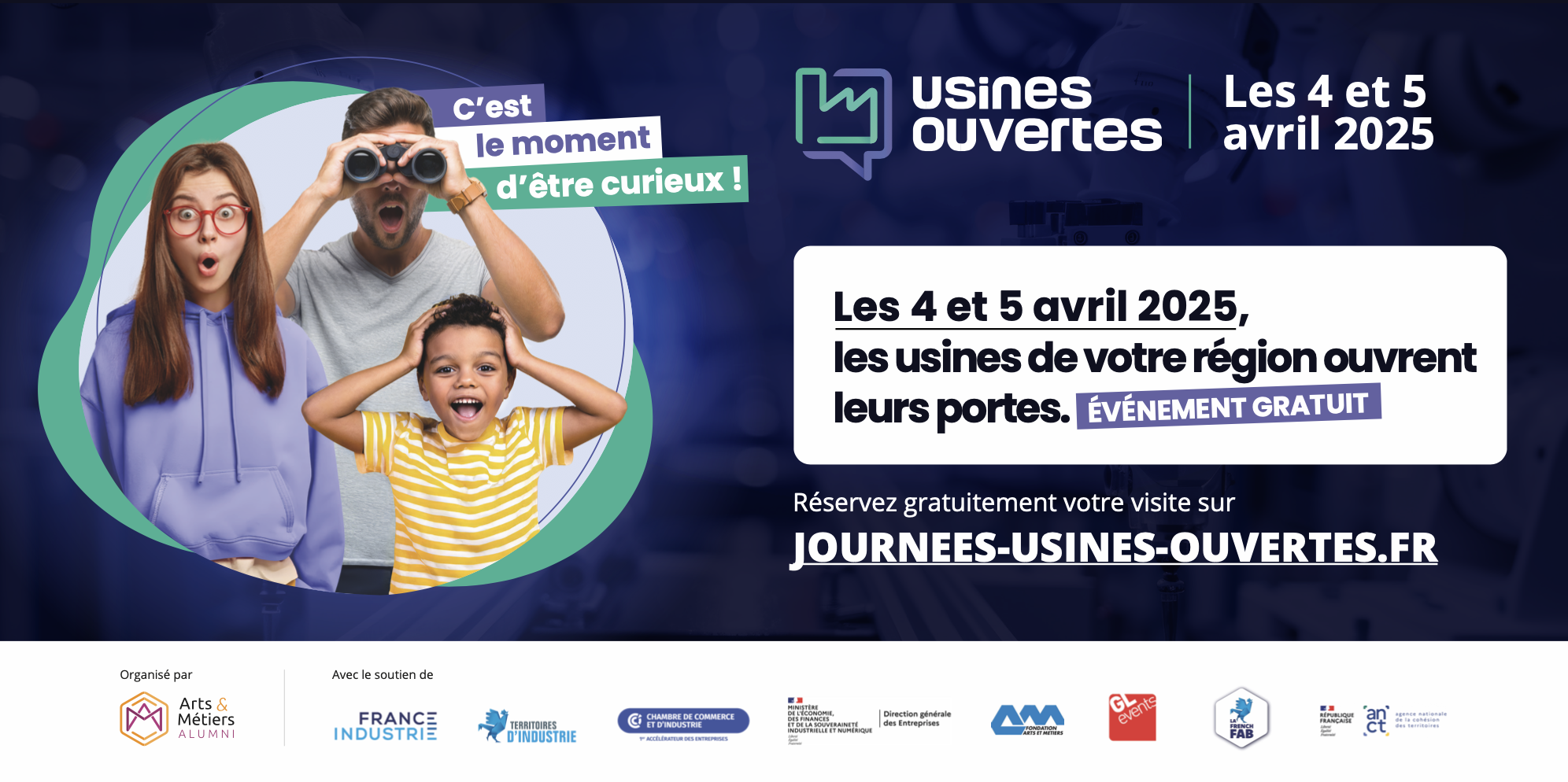 La Société des Ingénieurs Arts et Métiers a le plaisir d’annoncer la première édition des Journées Usines Ouvertes, un événement inédit qui se déroulera les 4 et 5 avril 2025 !
