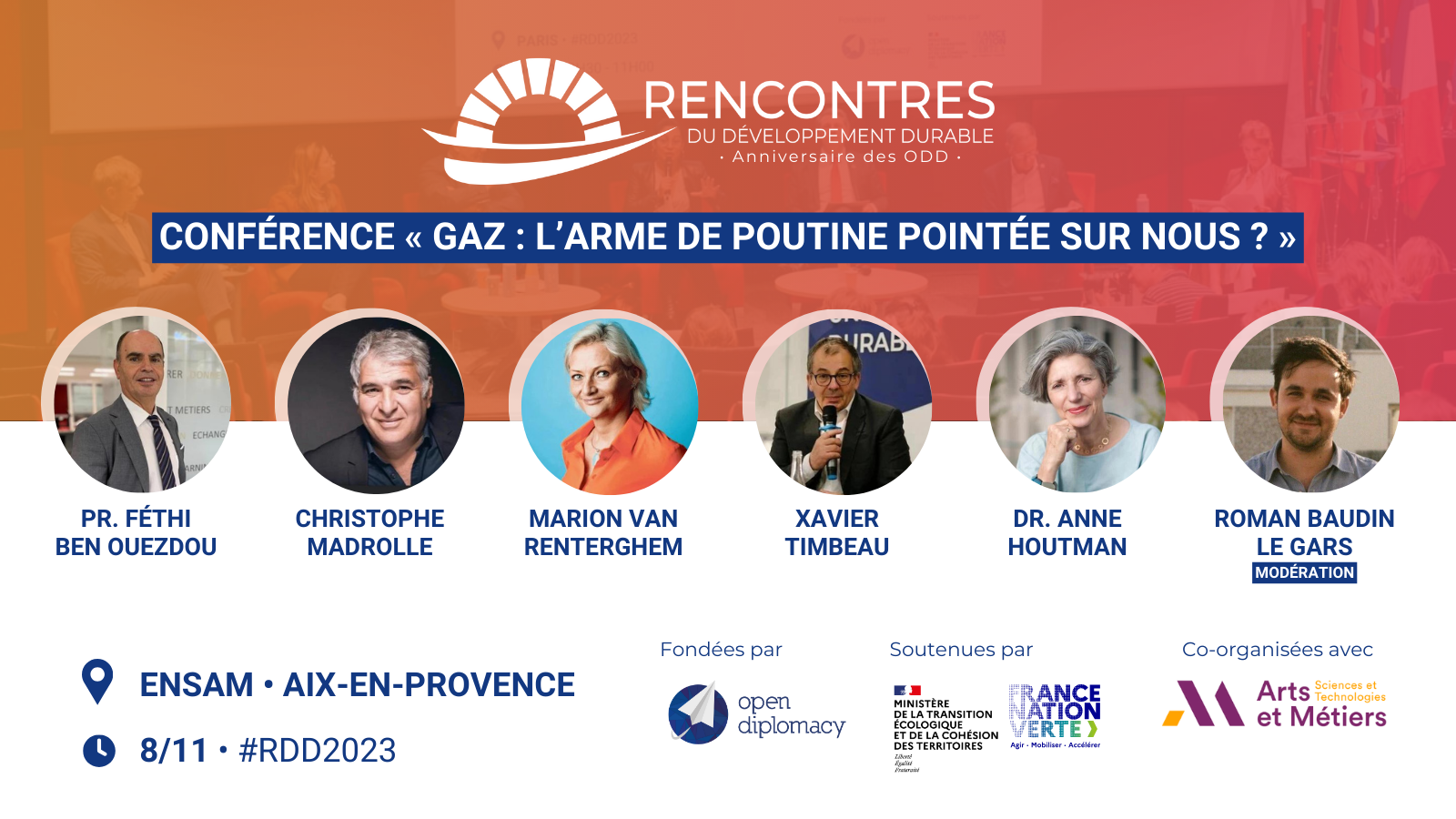 Les Rencontres du Développement Durable lancées en 2020 par l’institut Open diplomacy sont les plus grands rendez-vous démocratiques annuels et gratuits pour s’emparer des enjeux de transition afin de mieux se déplacer, mieux se loger, mieux préserver et valoriser nos écosystèmes, mieux produire, mieux se nourrir et mieux consommer.